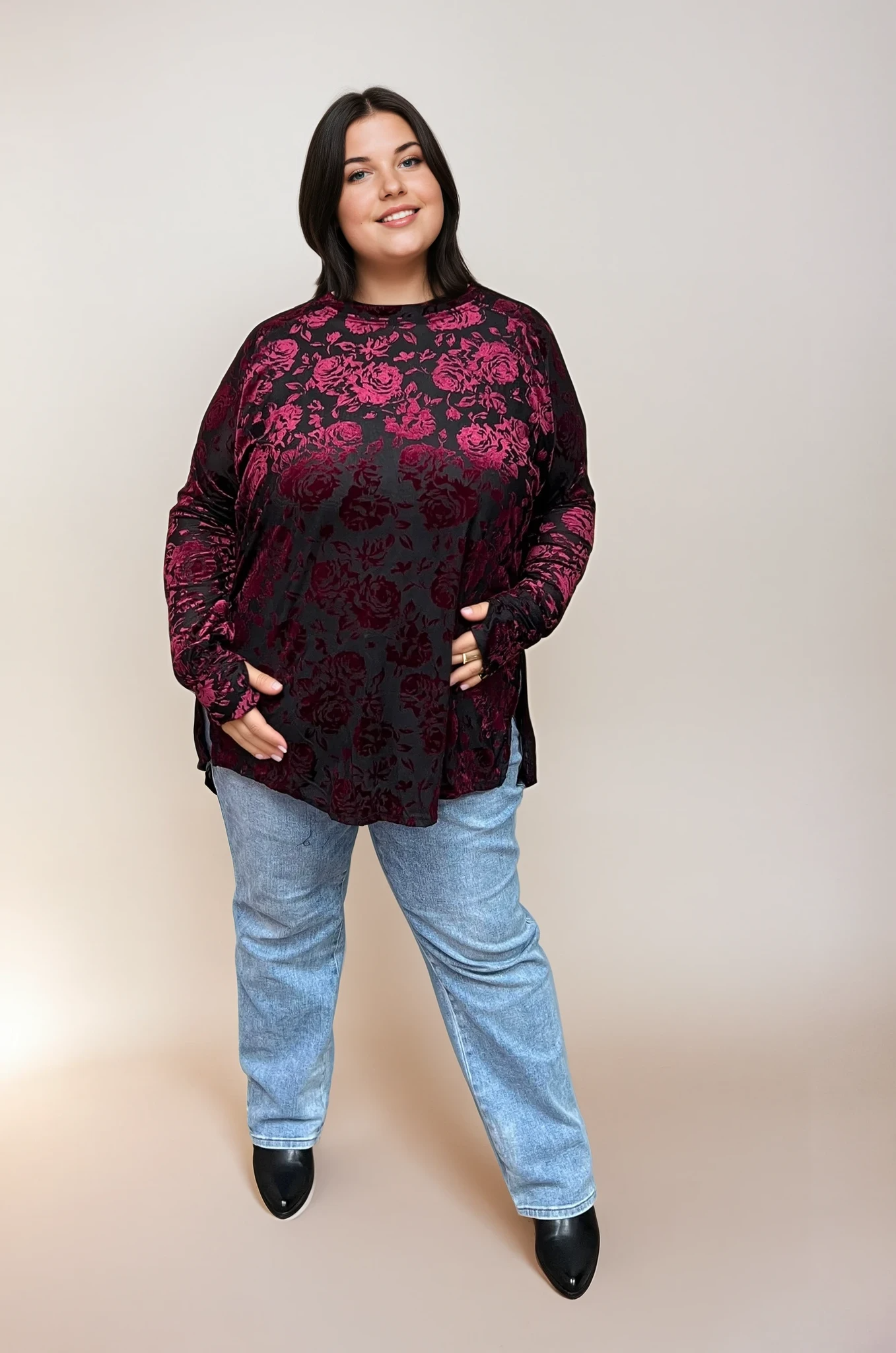 Textured, sophisticated, and endlessly versatile—the Burnout Edition is a statement piece with a subtle edge. The burnout fabric adds depth and dimension, while the tunic-length design, back pleats, and side slits create a flattering silhouette. Thumbholes offer a cozy, polished touch, making this top as practical as it is stylish.