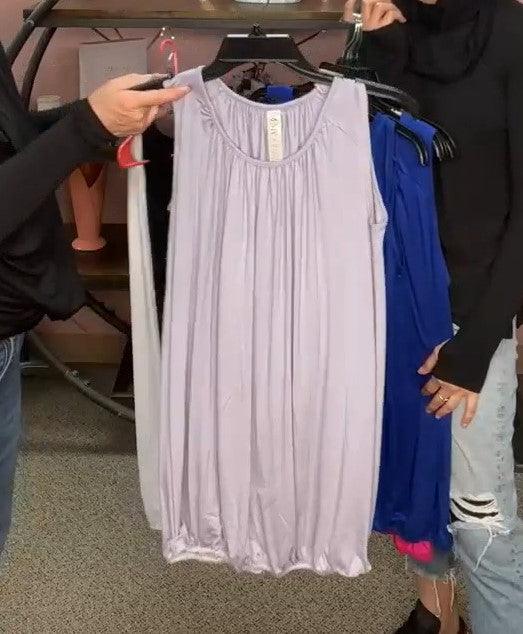The perfect oversized tank! Shirred at the top and bottom for a flowy yet fitted look that is flattering on all body shapes and sizes!