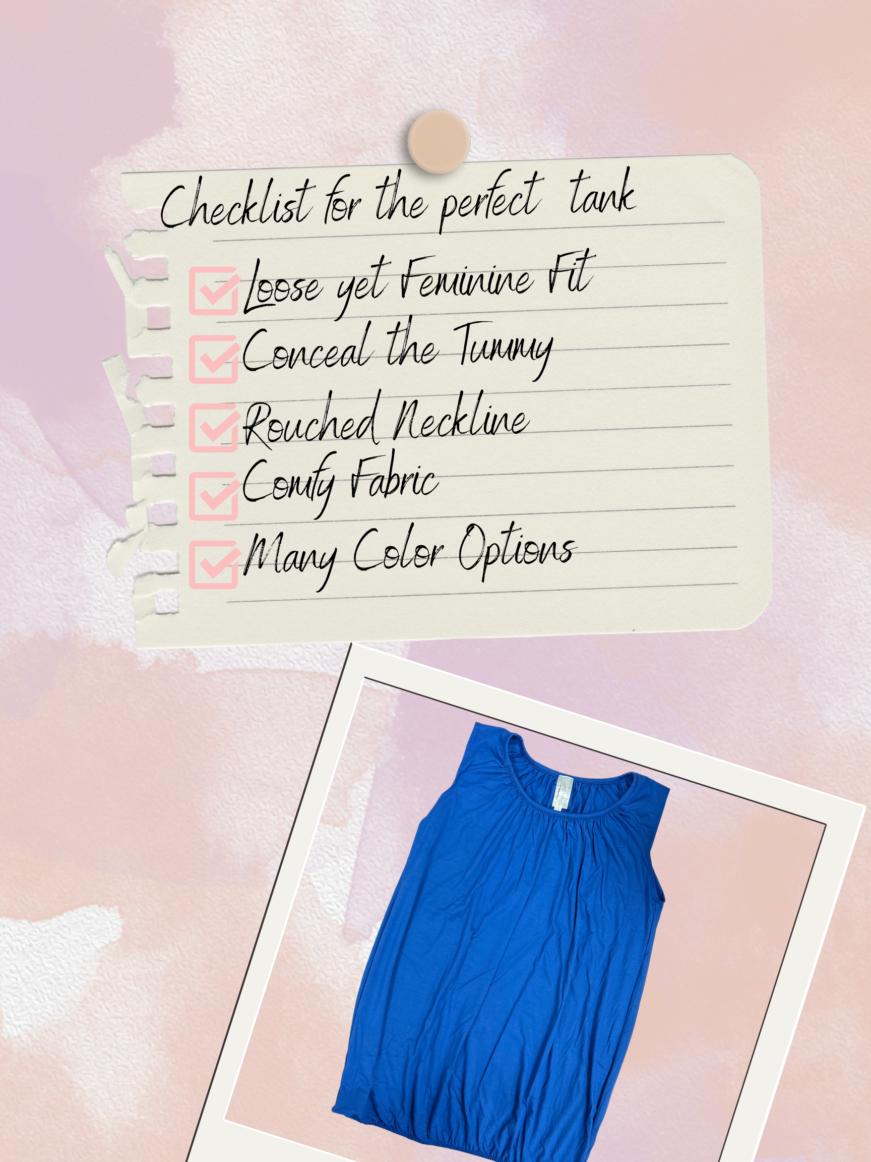 The perfect oversized tank! Shirred at the top and bottom for a flowy yet fitted look that is flattering on all body shapes and sizes!