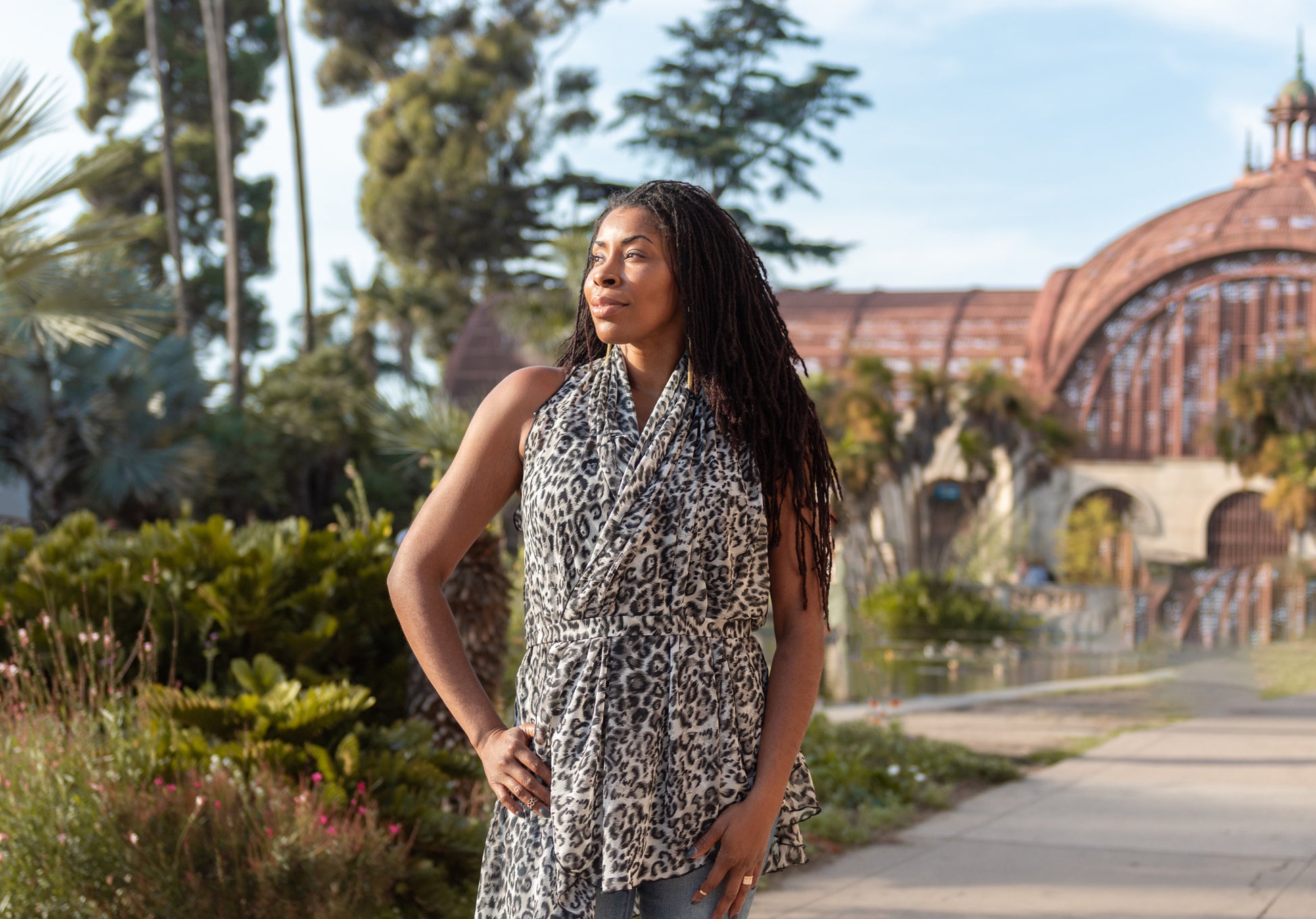 Our Go w/the flow is an easy vest-like coverup that can be worn multiple ways, wear is one arm poncho, a wrap vest or even a shawl! Regular fits up to a size 12, plus is a size 14 and up. Comes with matching belt.