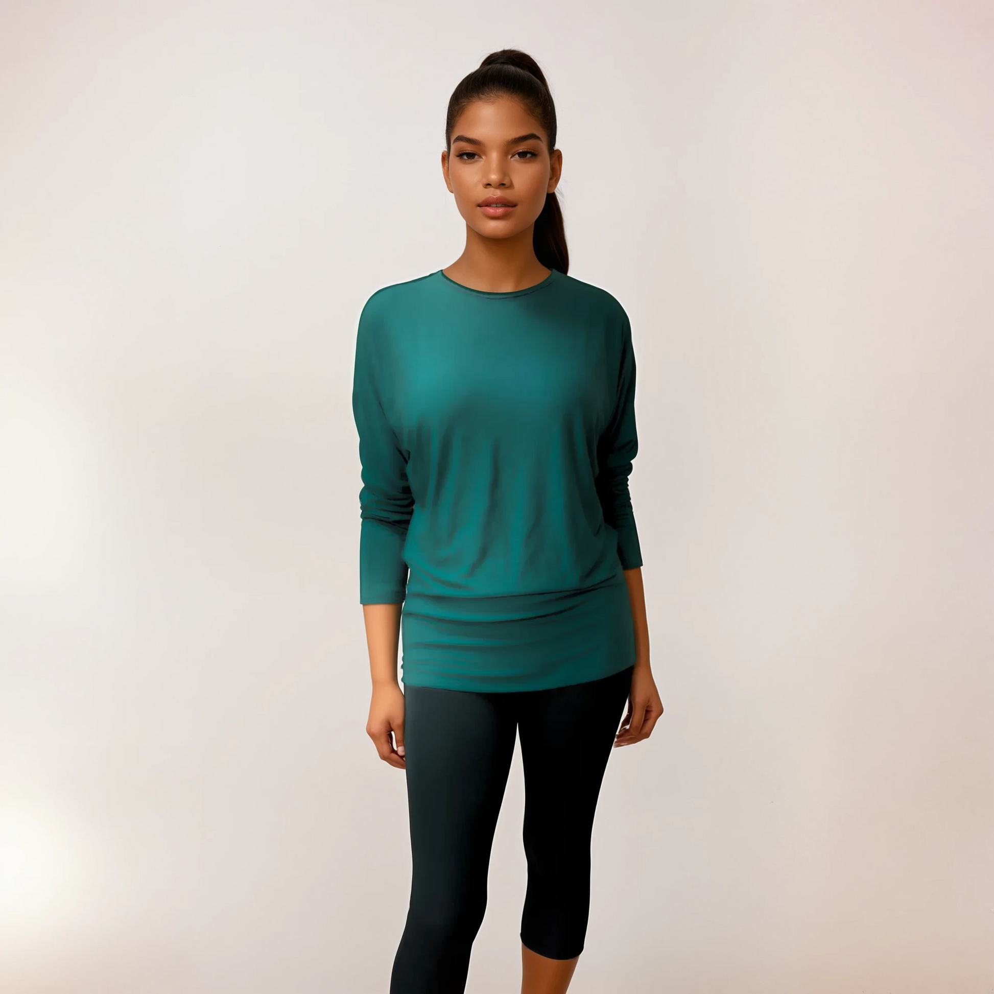 Where effortless drape meets a flattering fit—the Hip Hugger Dolman is a timeless dolman designed for both comfort and style. Made from a soft, stretchy fabric, this long-sleeve essential skims the body beautifully while hugging the hips for a sculpted yet easygoing silhouette.