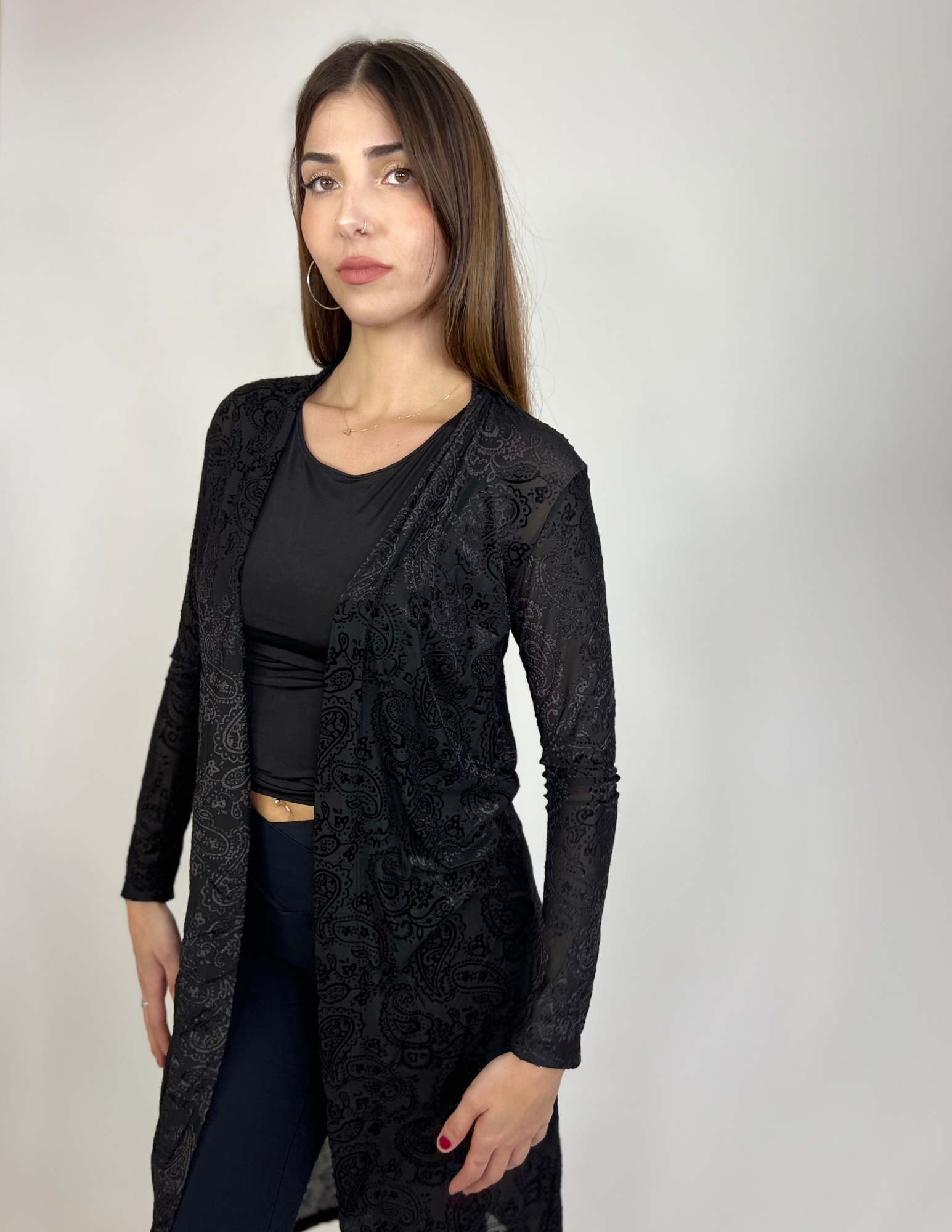 Wrap yourself in elegance this holiday season with our Holiday Maxi Duster! Designed with a graceful, straight silhouette that flatters every body, this duster adds an effortless touch of sophistication to any outfit. Made stretchy velvet burnout fabric, it’s perfect for layering over dresses, jeans, or even cozy loungewear. With full-length sleeves and ankle length, our Holiday Maxi Duster is the statement piece you’ll reach for on every festive occasion.