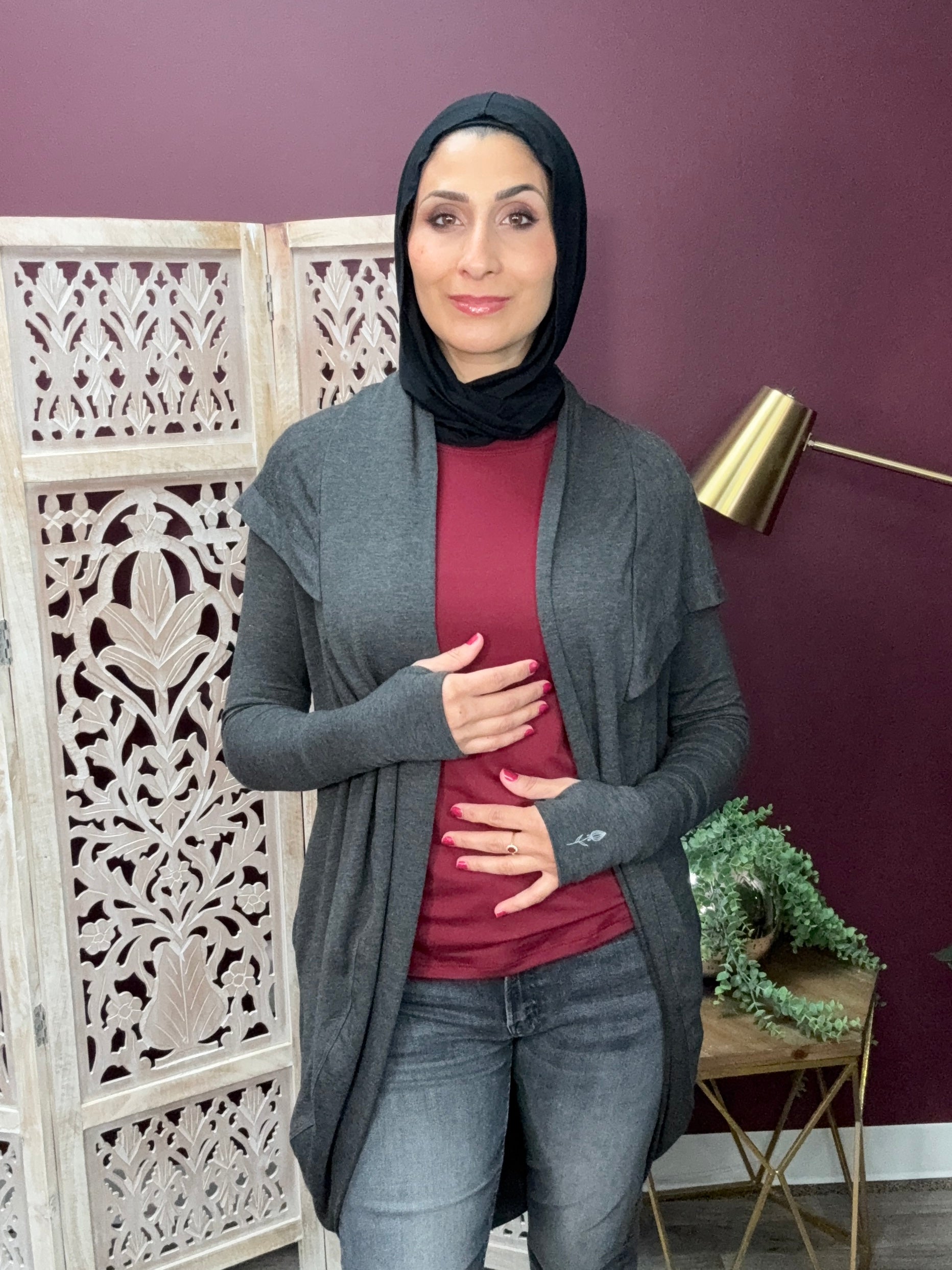 Our best-selling Hoodie Cardigan returns for winter in Cozy Smoke, made from a super-stretchy French terry that hugs just right without ever clinging. Think buttery softness with a touch more warmth — With its gentle drape, soft bounce, and just the right weight, it’s made for fireside lounging, perfect for chilly mornings, holiday travel, or anywhere you would wear a hoodie cardigan- we don't judge.
