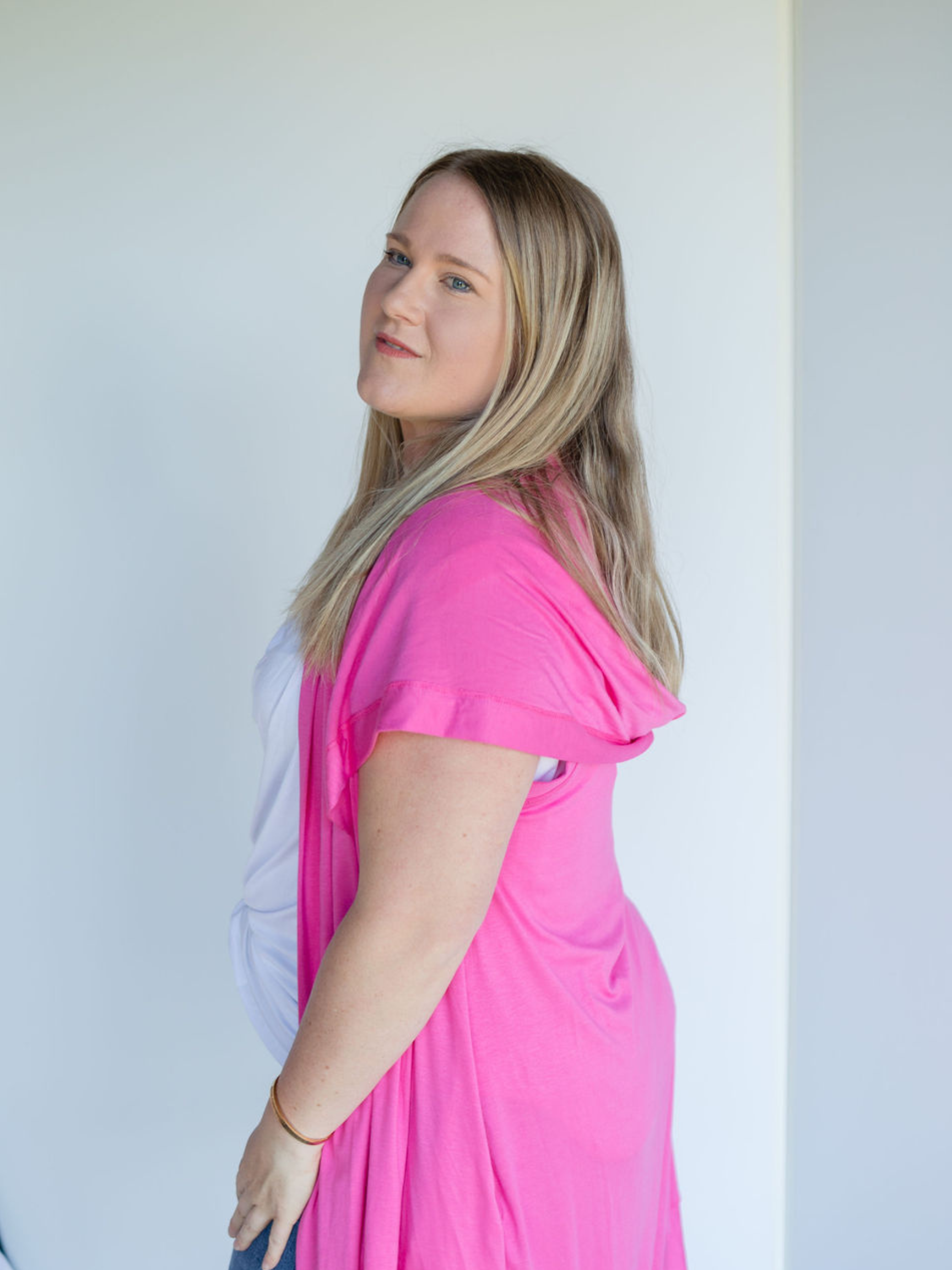 If you love our original Hoodie Cardi, you're going to love this sleeveless version!! Same design, pockets, oversized hood, and rounded silhouette.