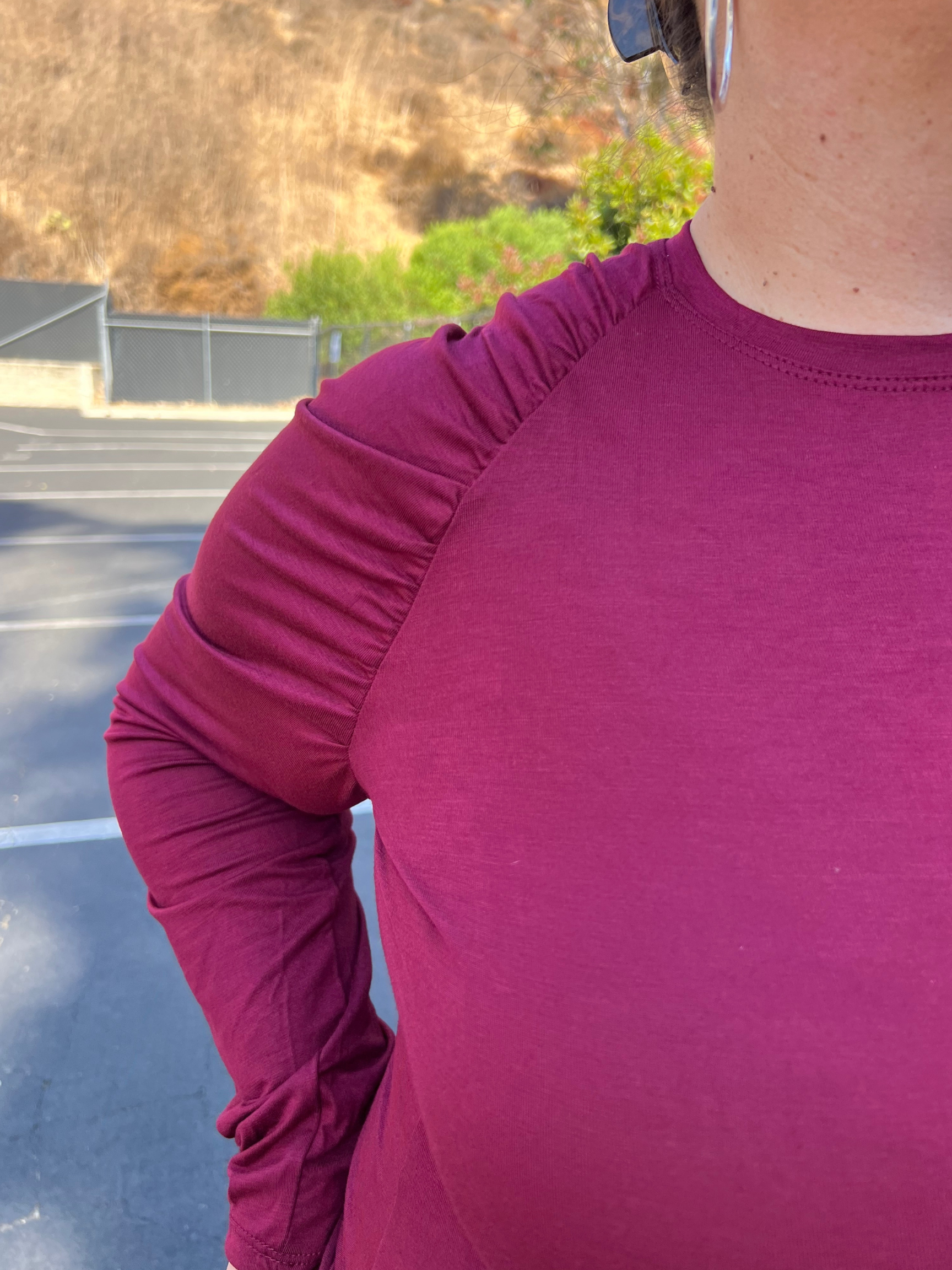 Meet your new favorite top: the Lorelai Top. With rouched sleeves that add just the right touch of flair, this piece effortlessly blends basic with chic. Crafted from our signature soft, breathable Model fabric, it is fitted in the body, which makes it a perfect base layer to your wardrobe. Whether you're dressing it up for a night out or keeping it casual for a day at the office, the Lorelai Top is anything but basic.