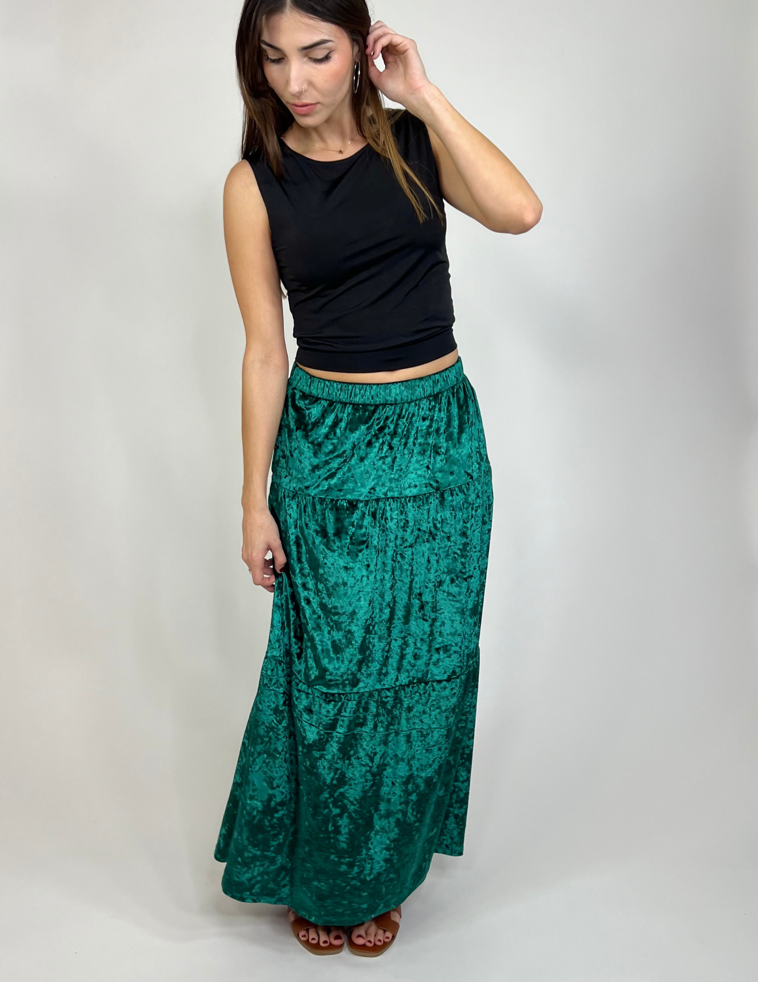 Luxe Velvet Tiered Skirts- Emerald