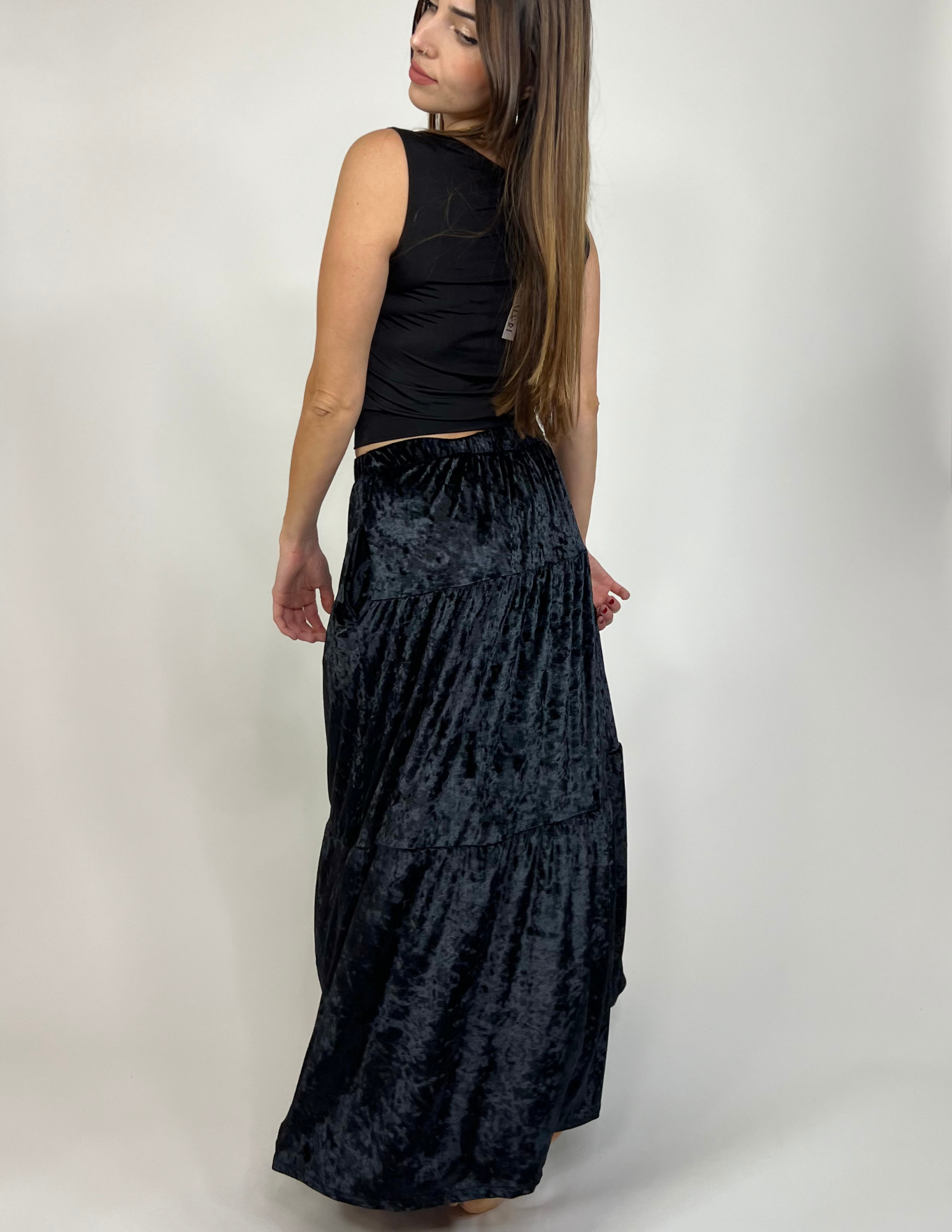 Luxe Velvet Tiered Skirts- Onyx