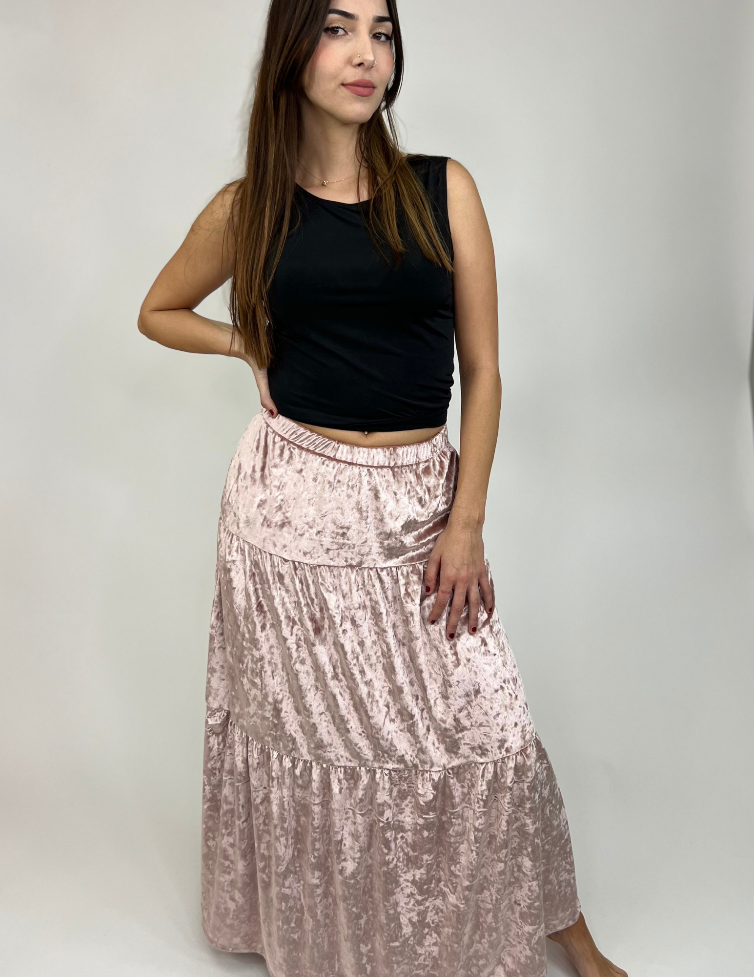 Luxe Velvet Tiered Skirts- Pink Pearl