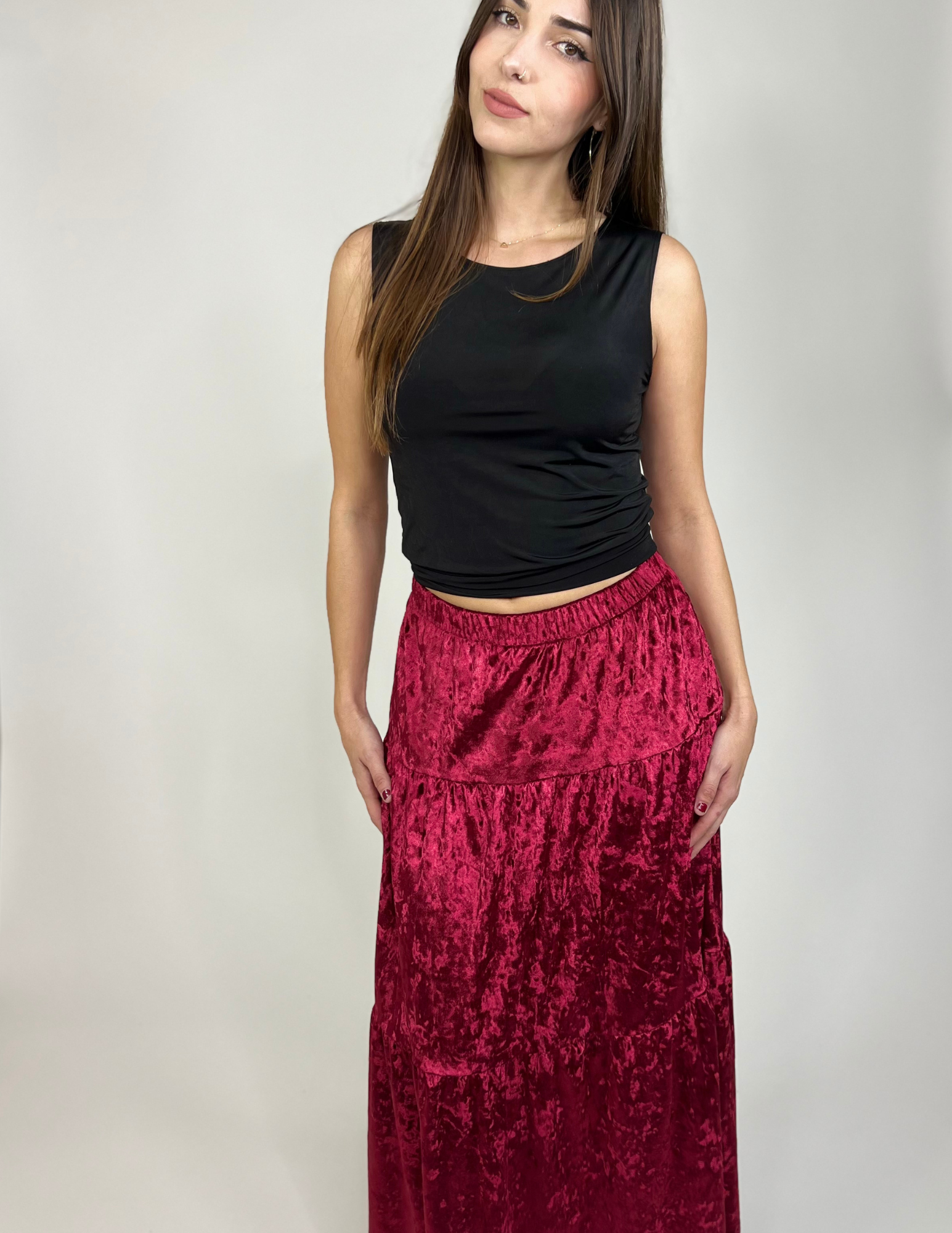 The holidays are here, and so are our limited-edition velvet tiered skirts!