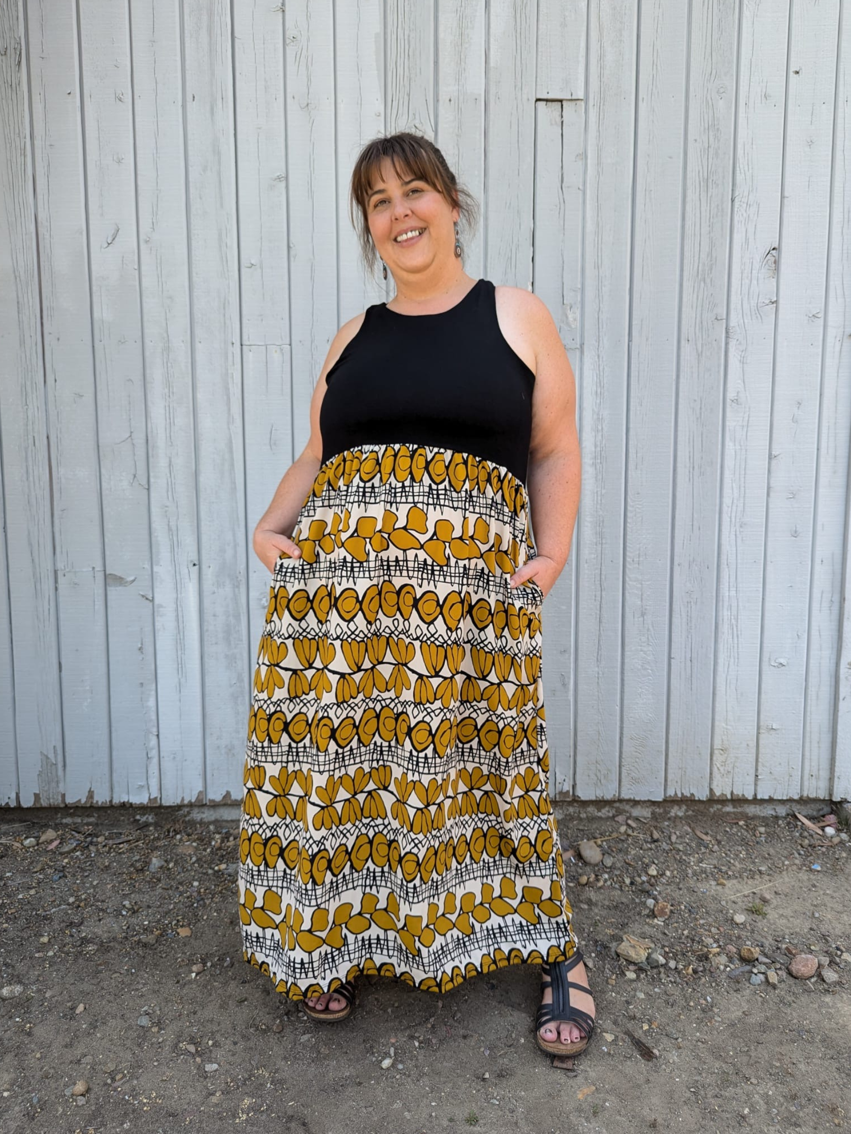 Fit and flare, this summer dress is endlessly flattering. Racerback top that is double lined. Made out of our super soft jersey that's designed to move with you. Super comfy, flowy and with side seam pockets that make it practical and for when someone compliments you, you can say "Thanks, its got pockets!"