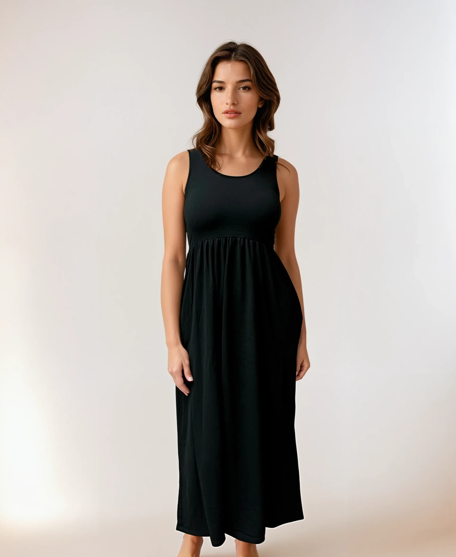 Breezy, beautiful, and made for you. The Summer Dress is the ultimate warm-weather staple—full-length for effortless elegance, designed with a flattering empire waist, and finished with a racerback for a touch of sporty chic. And yes, it has pockets (because we know you love them). Whether you're lounging, brunching, or jet-setting, this dress is all about comfort, style, and ease.