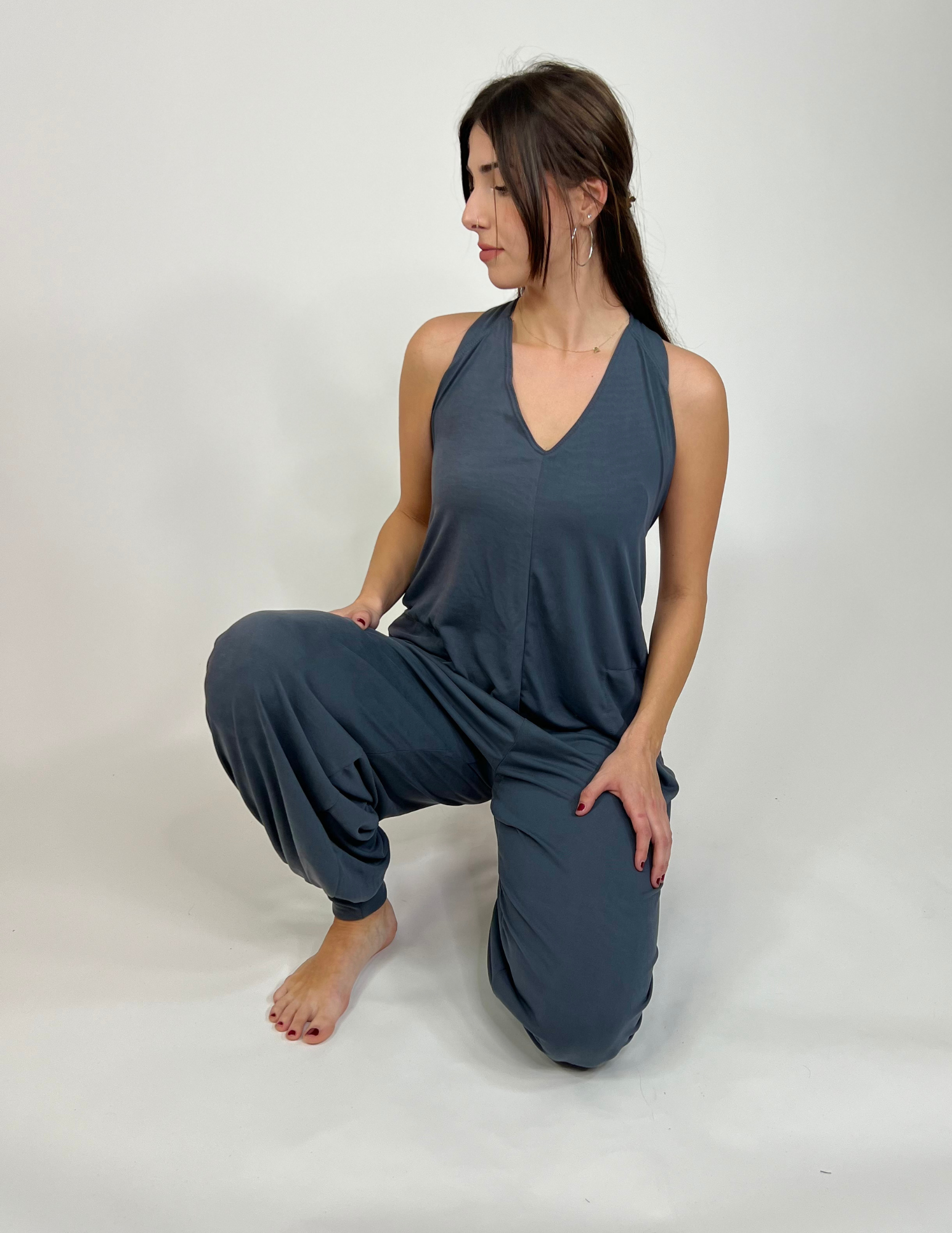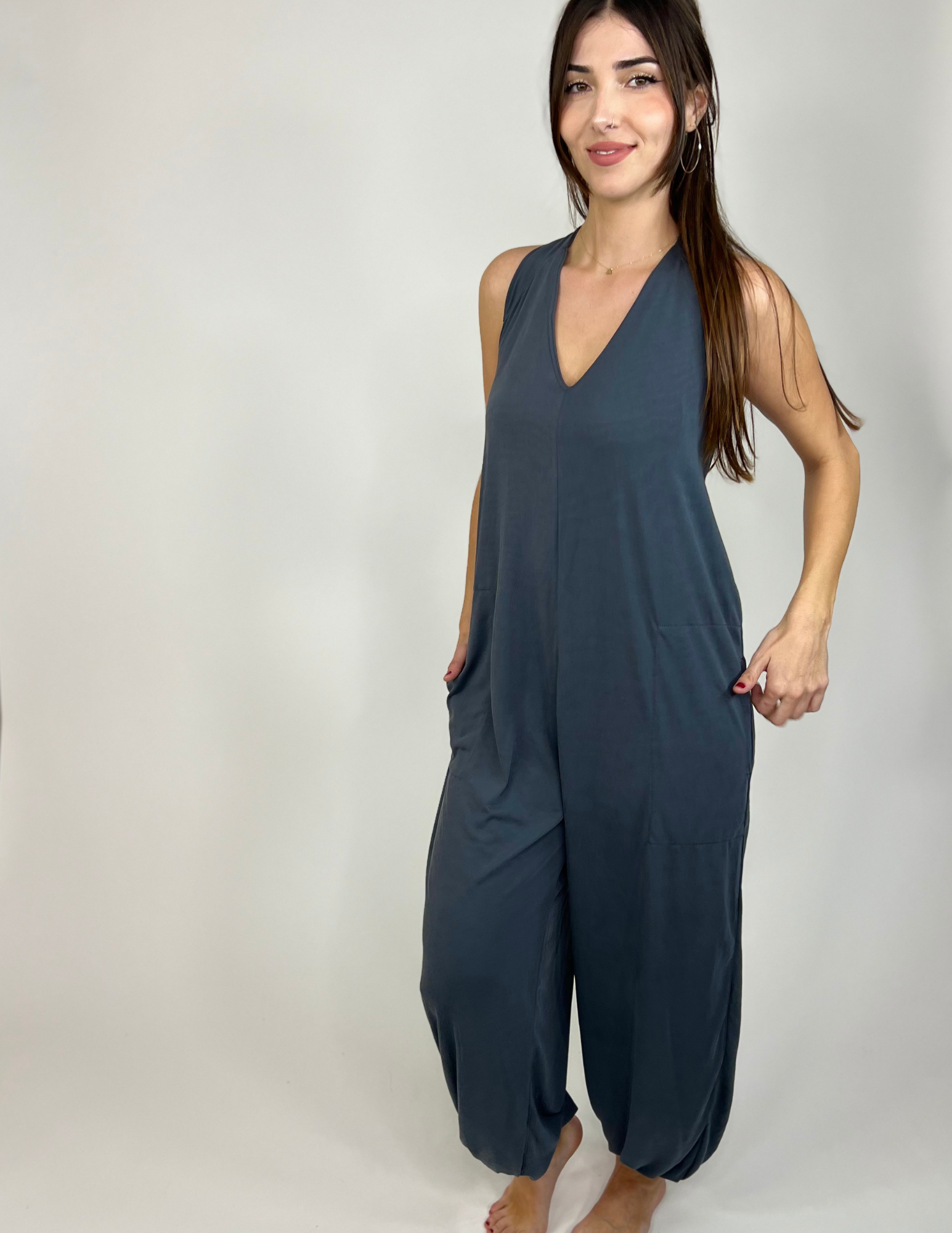 The Sunday Morning Jumper features cuffs at the legs which means you don't have to worry about length and seamless pockets and the halter style top so the ways to wear it are endless.