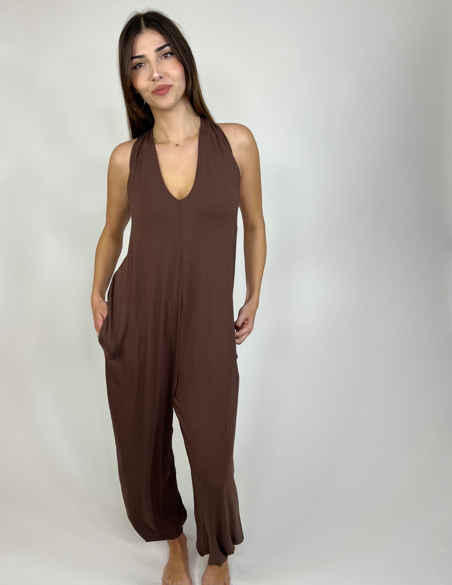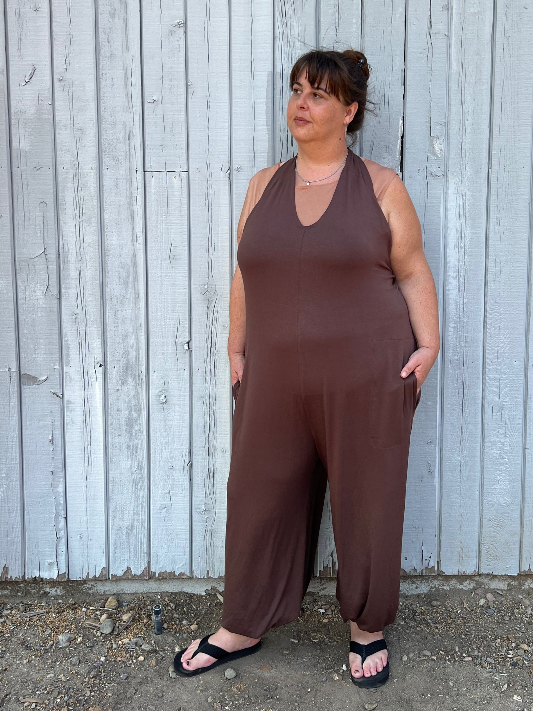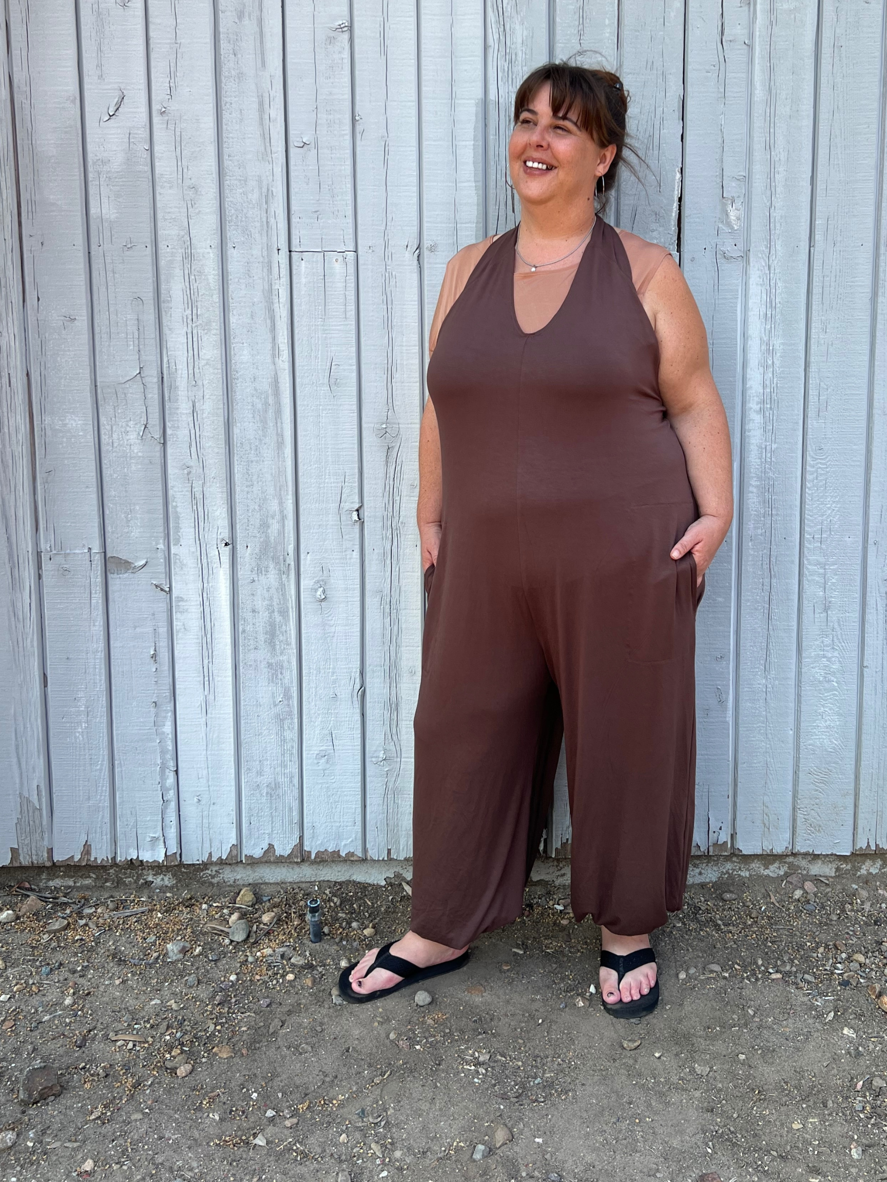 The Sunday Morning Jumper features cuffs at the legs which means you don't have to worry about length and seamless pockets and the halter style top so the ways to wear it are endless.
